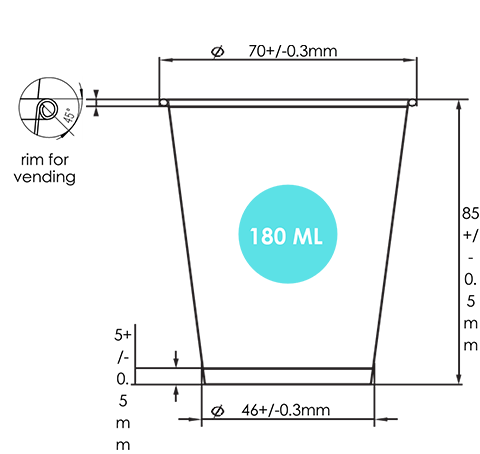 Exclusive rim diameter designed for vending cup to eliminating the jam risk.